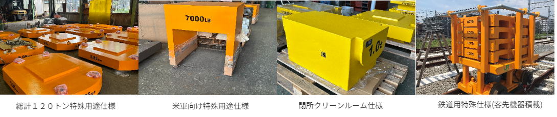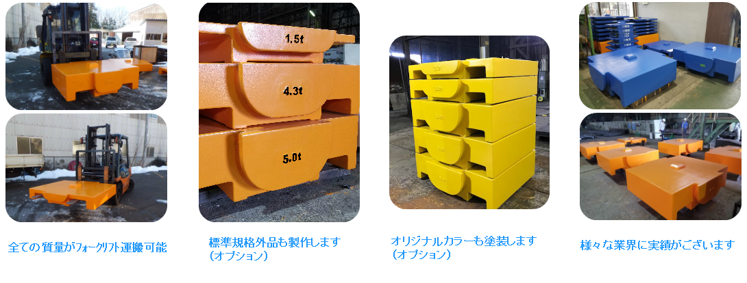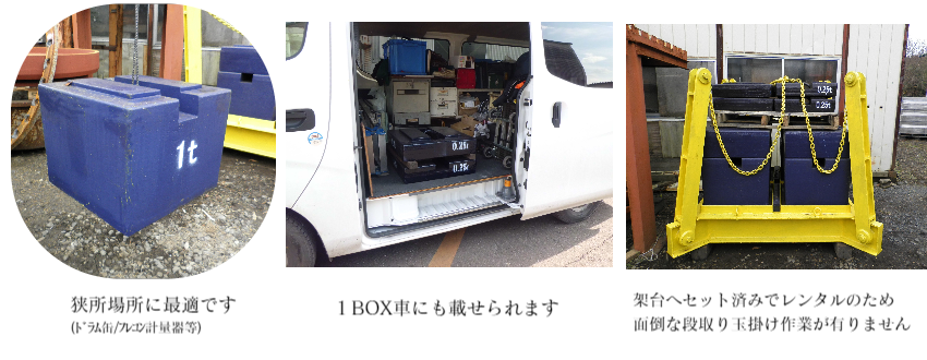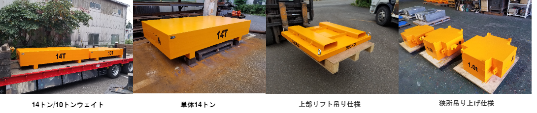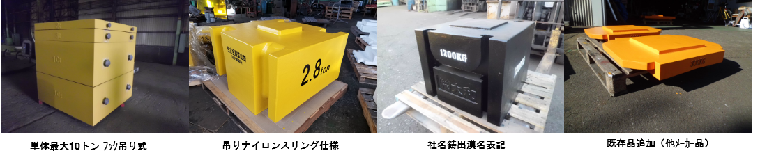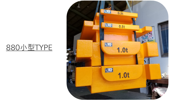 クレーンその他検査用ウェイトには、大型商品が多く実際の現場に不向きな物が多かった為、使い勝手の良い小型規格商品を考案いたしました。